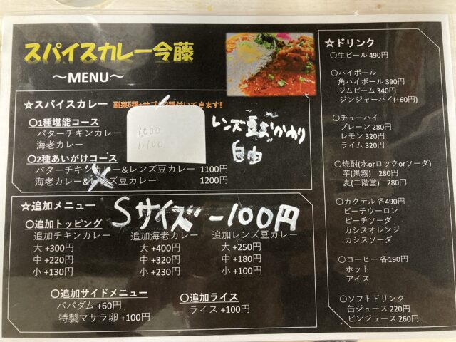 尚、カレーとご飯がSサイズ(通常の3/4の量)だと100円引きになります。