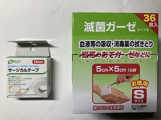 ガーゼは一番小さいSサイズが5㎝×5㎝。