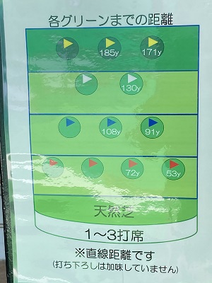 3階席のグリーンまでのの距離