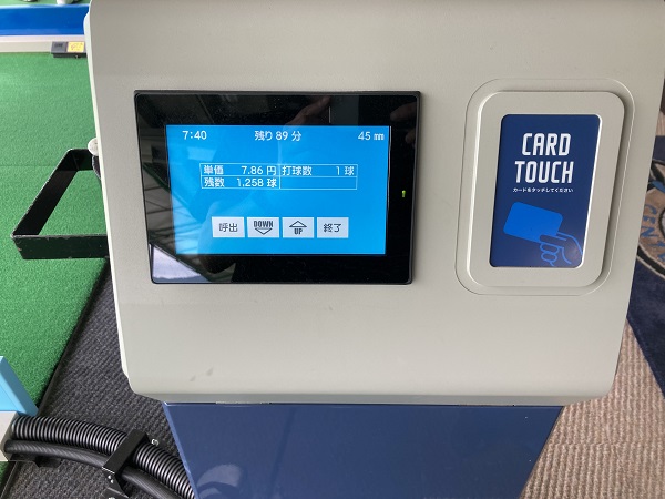 その後、土曜日の午前7時半頃に東大阪ゴルフセンターに行ったところ、1階にある自動チェックイン機で、空き打席を指定(予約)するやり方でした。