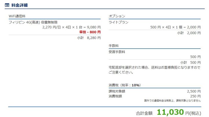 *フィリピン3泊4日で4G無制限プランの場合