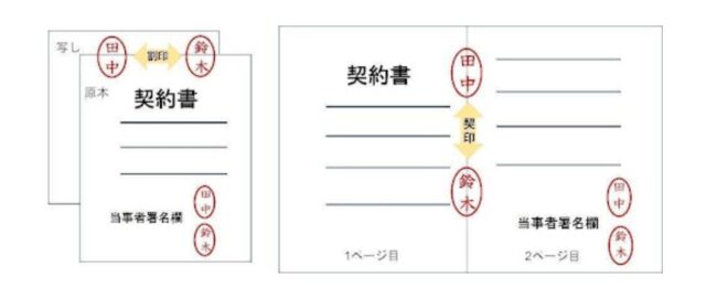契印とは、1つの契約書が複数枚にわたる場合に、ページの連続性を証明するもの。
