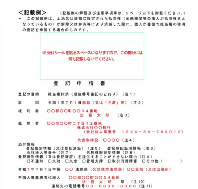 ⇒※参照:抵当権抹消登記申請書~不動産登記の申請書様式について【法務局】